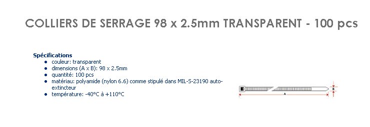 Collier de serrage 98 x 2.5 mm naturelpaquet de 100 pièces