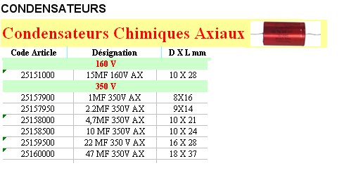 Condensateur axial - 15MF 160 Volts
