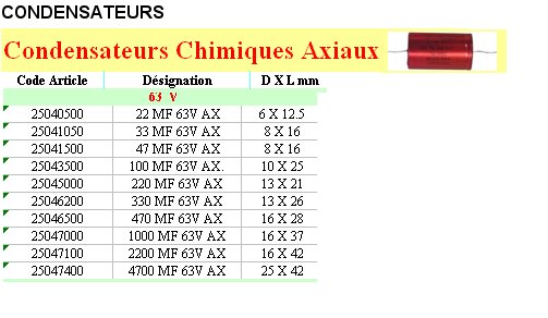 Condensateur axial - 47MF 63 Volts