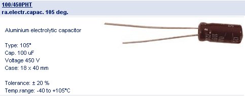 Condensateur chimique Radial - 100 MF 450 Volts 105 °C