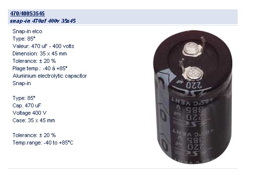 Condensateur chimique Sanp-in - 470MF 400 Volts