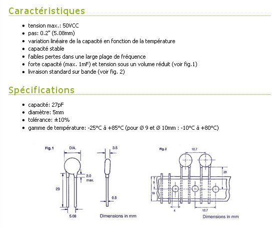 Condensateur pas 5.08 - 27PF 50 Volts
