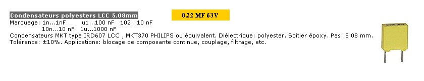 Condensateur Polyester - 220 nF 63 Volts 10%
