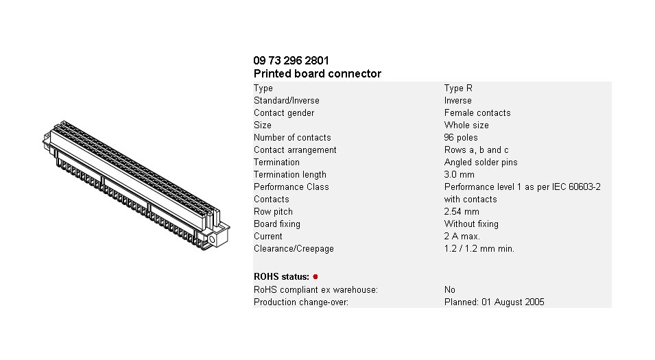 Connecteur 41612 femelle96 points TYPE C (a+b+c) coudé