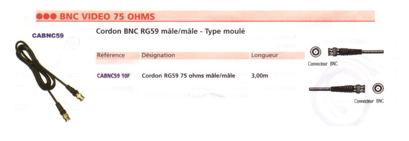 Cordon BNC Mâle/Mâle RG59 75 Ohms 3 mètres