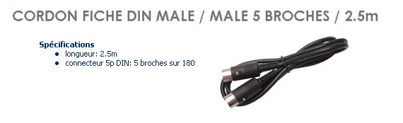 CORDON DIN 5 BROCHES MALE-MALE 2.5 metres