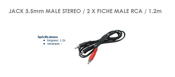 > > > > Cordon jack 3,5 mm vers 2 RCA mâle - 1,2 mètre