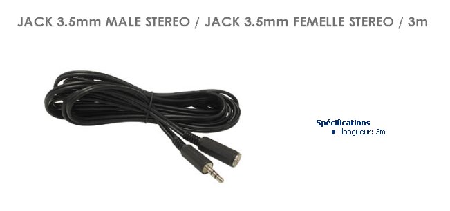 CORDON JACK 3.5 MALE/FEMELLE STEREO 3M