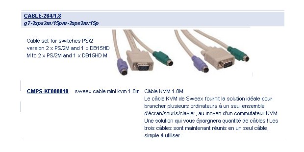 > > > > Cordon KVM mâle/mâle - clavier / souris / moniteur - 1,8 mètres