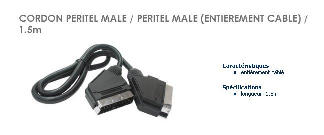 Cordon péritel Mâle / Mâle 21 broches 1.50m