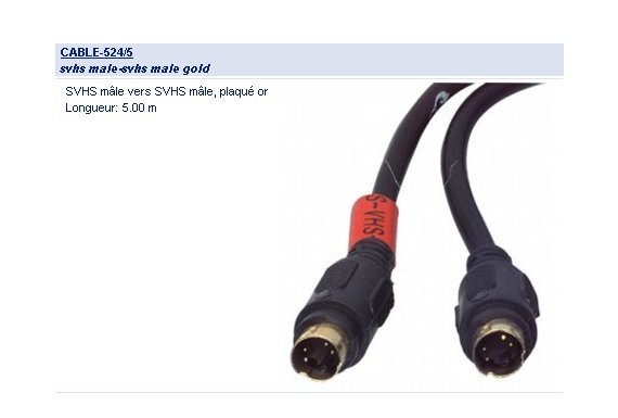 CORDON S-VHS MINI-DIN 4 broches MALE/MALE 5 METRES