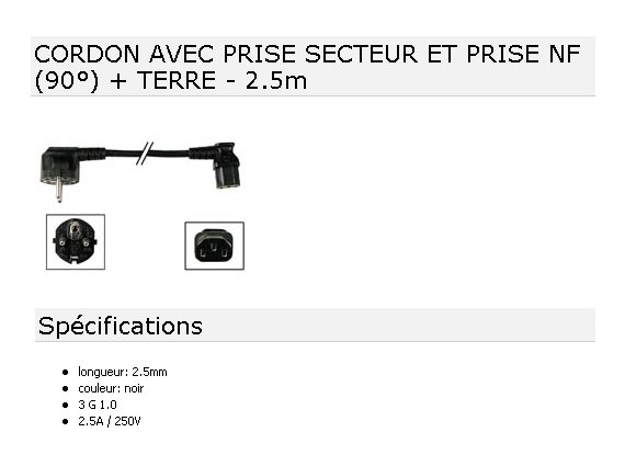 CORDON secteur male coude/fem. CEE coudee 3x1 NOIR 2.5M