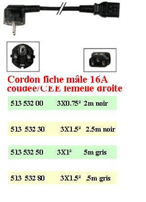 CORDON secteur male coude /fem. CEE droite 3x0.75 noir 2M CAC 318-65