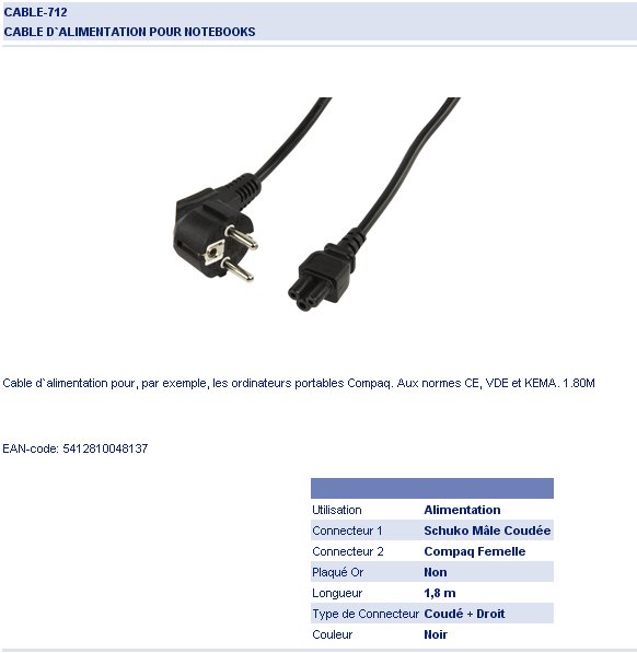 - Cordon audio / Vidéo / Téléphonique / Secteur