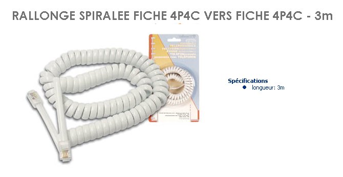 CORDON SPIRALE FICHE 4P4C MALE/MALE