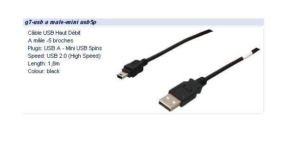 CORDON USB A MALE / MINI USB 1.80 M ##