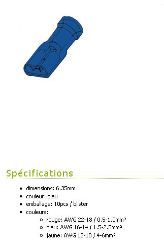 Cosse faston femelle isolée bleue 6.3 mm S1.5-2.5 mm2 blister de 10