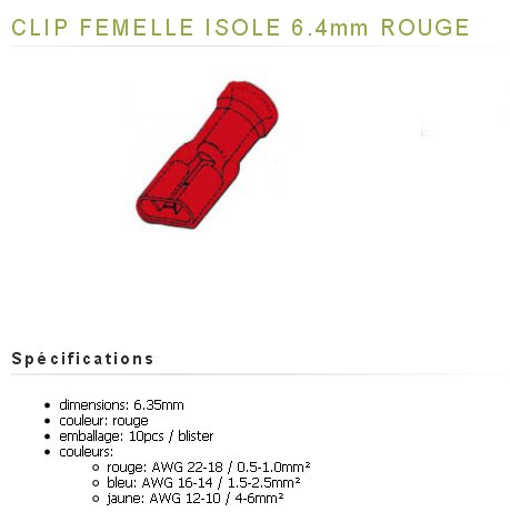 Cosse faston femelle isolée rouge 6.3 mm S0.5-1.5 mm2 blister de 10