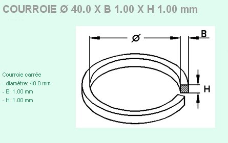 Courroie section carrée 40 x 1 x 1 mm