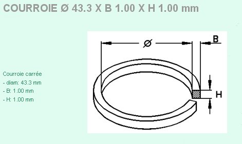 Courroie section carrée 43.3 x 1 x 1 mm