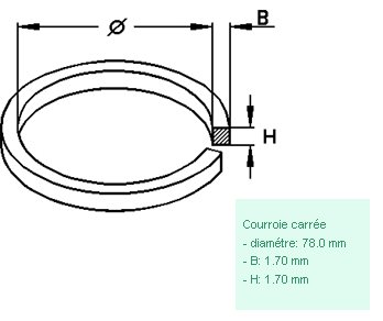 Courroie section carrée 78 x 1.2 x 1.2 mm B-SQ078