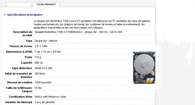> > > > Disque dur 3,5 PATA Seagate - 500 Go / 7200 rpm / 16 Mo cache