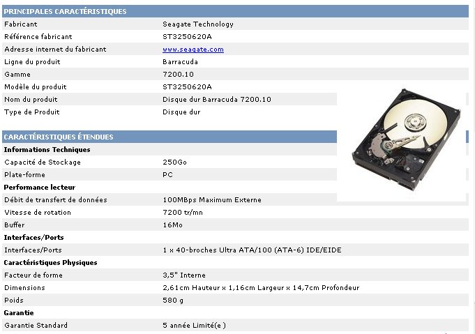 Nom du produit : Disque dur 3,5 PATA Western Digital - 250 Go / 7200 rpm / 8 Mo cache