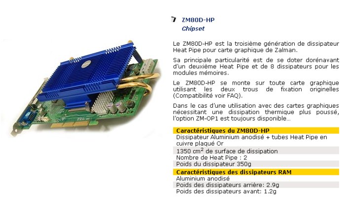 DISSIPATEUR Heat Pipe pour carte graphique de Zalman ZM80D-HP
