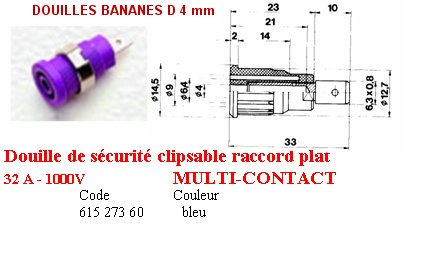 DOUILLE BANANE DE SECURITE CLIPSABLE d.4 mm BLEUE