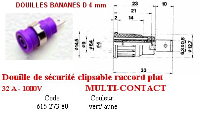 DOUILLE BANANE DE SECURITE CLIPSABLE d.4 mm JAUNE/VERTE