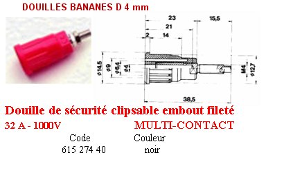 DOUILLE BANANE DE SECURITE CLIPSABLE d.4 mm NOIRE