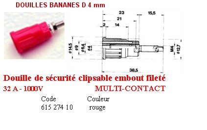 DOUILLE BANANE DE SECURITE CLIPSABLE d.4 mm ROUGE