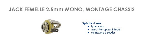 Nom du produit : EMBASE JACK 2,5mm FEMELLE mono