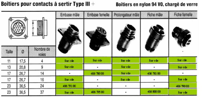 > > > > Embase mâle CPC 24 pts - 600 Volts AC 7,5 Ampères à sertir
