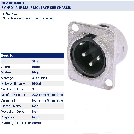 EMBASE XLR 3 broches MALE NEUTRIK