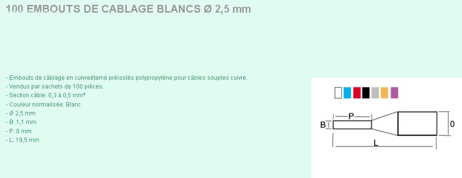 Nom du produit : EMBOUT DE CABLAGE blanc 0.3 A 0,5 mm2 sachet de 100