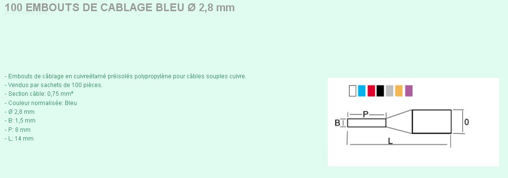 > > > > EMBOUT DE CABLAGE bleu 0,75 mm2 sachet de 100