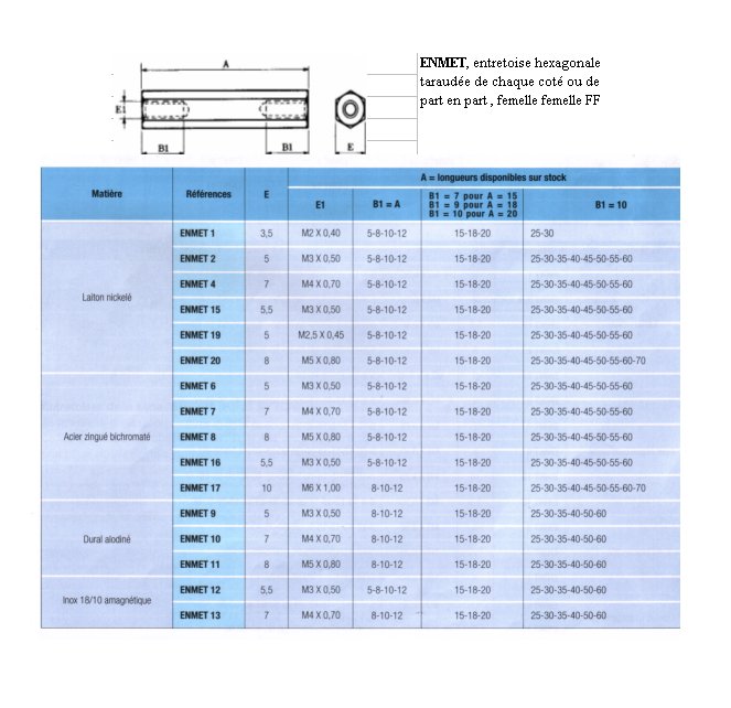 Entretoise métal 6 pans Enmet 6 LG 15 EXT 5mm / INT M3x0.50