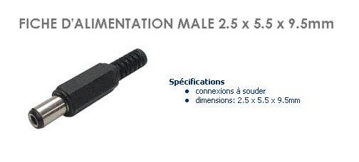 FICHE ALIMENTATION d 2.5mm LONGUEUR 9mm COURTE