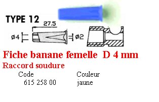 FICHE BANANE FEMELLE d.4 mm JAUNE POUR CORDON