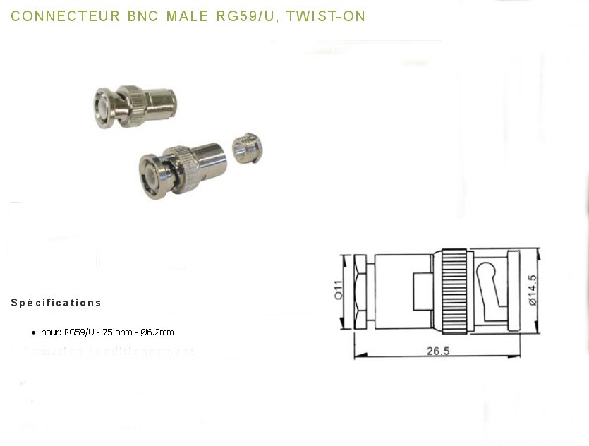 FICHE BNC MALE Droite 75 ohms pour cable 6 mm a souder