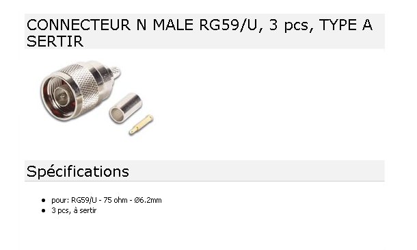 FICHE N MALE Droite 75 ohms pour c?ble 6 mm ? sertir
