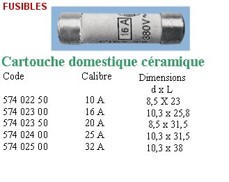 FUSIBLE DOMESTIQUE 16A 10.3 x 25.8 mm