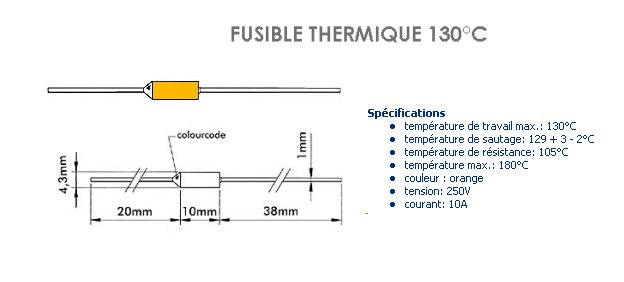 Fusible thermique 130°C - 250 Volts - 10 Ampères