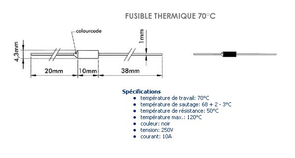 Fusible thermique 70 °C - 250 Volts - 10 Ampères