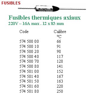 Fusible thermique 92 °C - 250 Volts - 10 Ampères