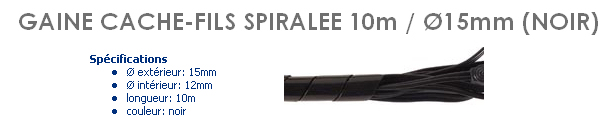 Gaine spiralée noire diamètre 15 mm rouleau de 10 mètres