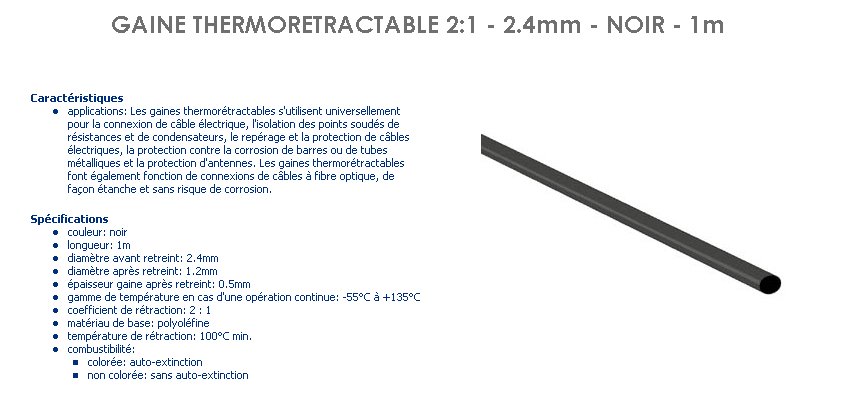 GAINE THERMO 2.4 mm NOIR tube de 1 metre