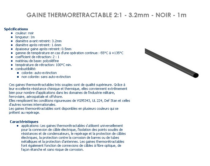 GAINE THERMO 3.2 mm NOIR tube de 1 metre