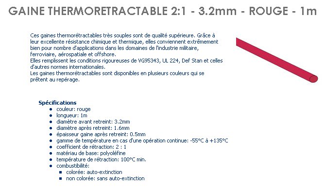 GAINE THERMO 3.2 mm ROUGE tube de 1 metre